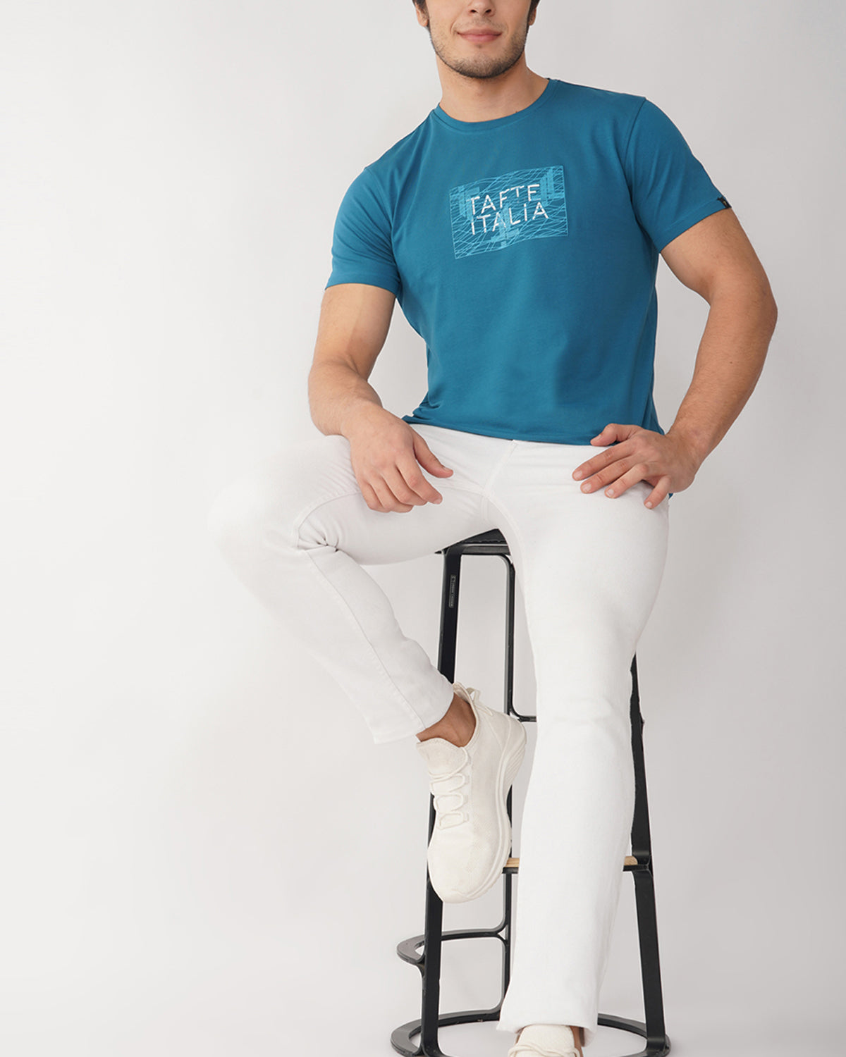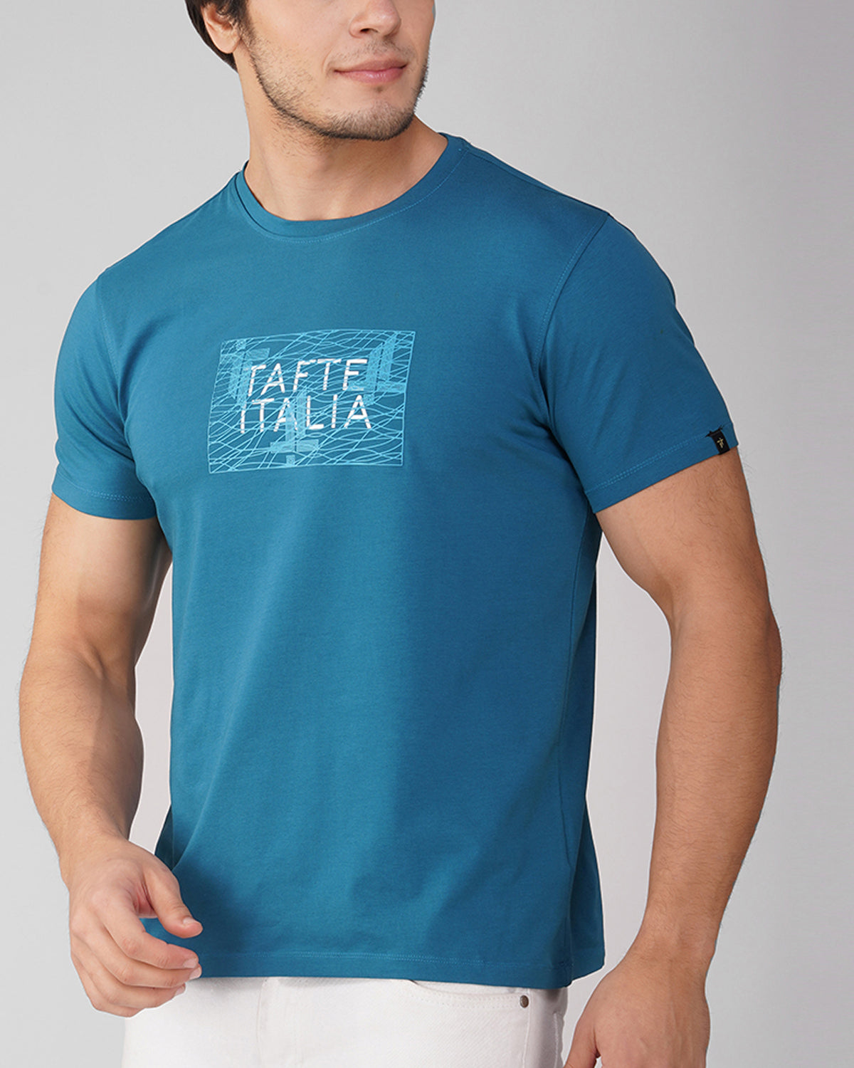 Meet your new favourite: the Mid-Night Crystal Teal T-Shirt . This smart tee boasts a sleek graphic print in high definition, perfect for adding a sporty yet classy touch to your look. Designed to make a statement, it's the epitome of style and comfort, ready to elevate any casual ensemble.Material