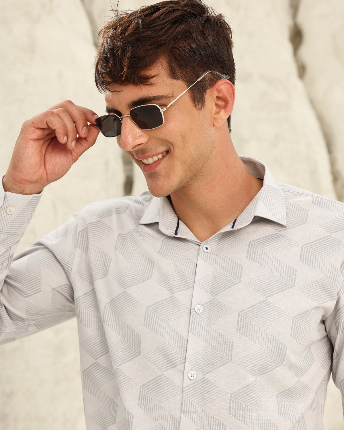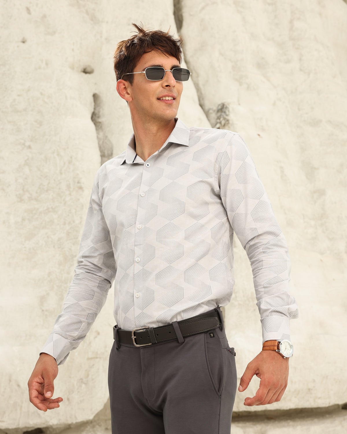 Indulge in the perfect fusion of contemporary design and unparalleled comfort with our Cool Grey Abstract Printed Light Casual Linen Shirt from Tafte Italia. Made from the finest linen fabric, this shirt encapsulates sophistication, versatility, and a touch of edginess. Our design experts have meticulously crafted a modern abstract print that captures the essence of cool yet understated elegance. The beautiful blend of grey tones creates a subtle yet eye-catching pattern, adding an air of exclusivity to your ensemble.Material